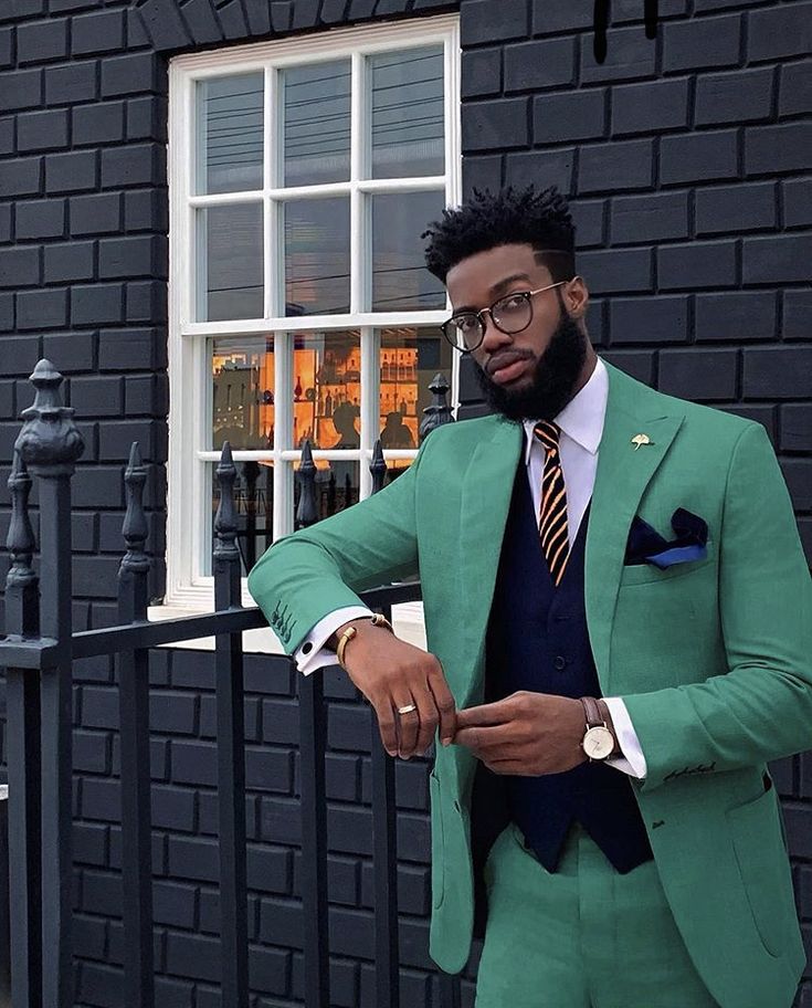 A custom-made olive green double-breasted suit . Crafted with precision and attention to detail, this suit ensures you stand out with sophistication and confidence.